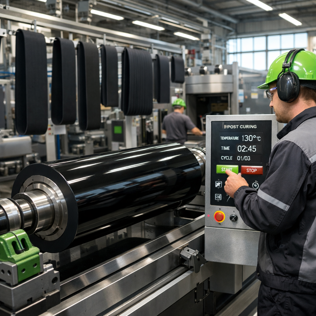 Nella produzione di cilindri industriali, tappeti senza fine e componenti tecnici, la qualità finale del prodotto non dipende esclusivamente dalla scelta del materiale o dalla precisione della lavorazione meccanica. Esiste una fase spesso sottovalutata, il post-curing, che determina in misura rilevante le prestazioni reali del componente in esercizio.
